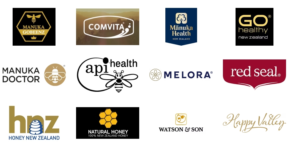 - Raw / pure Mānuka honey — jars of honey graded by MGO or UMF (Unique Manuka Factor) rating, e.g. MGO 250+, MGO 500+, etc.